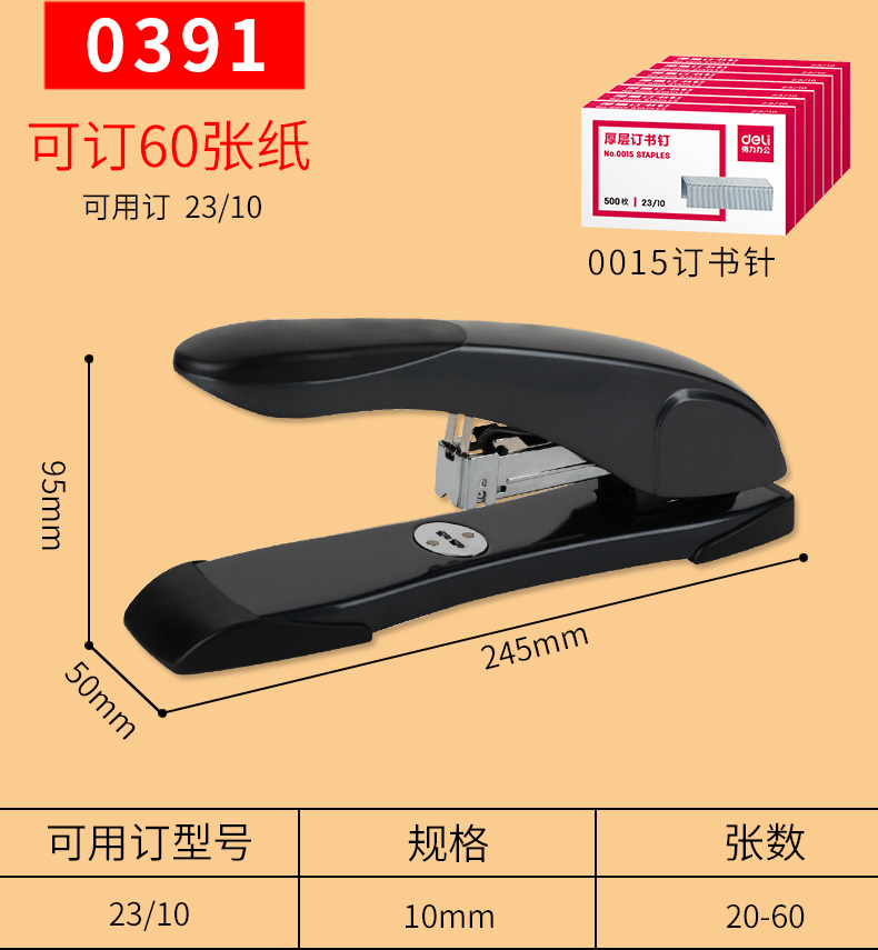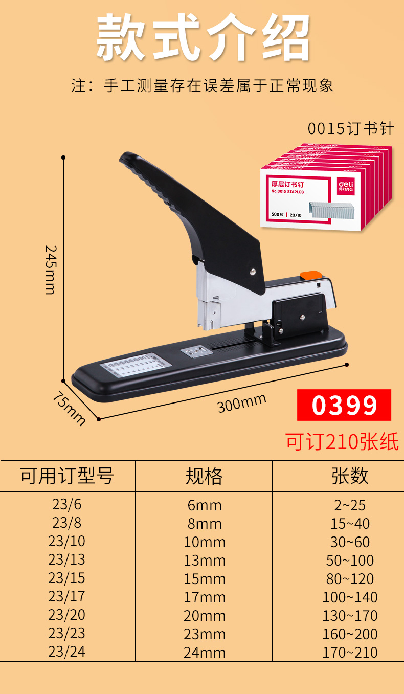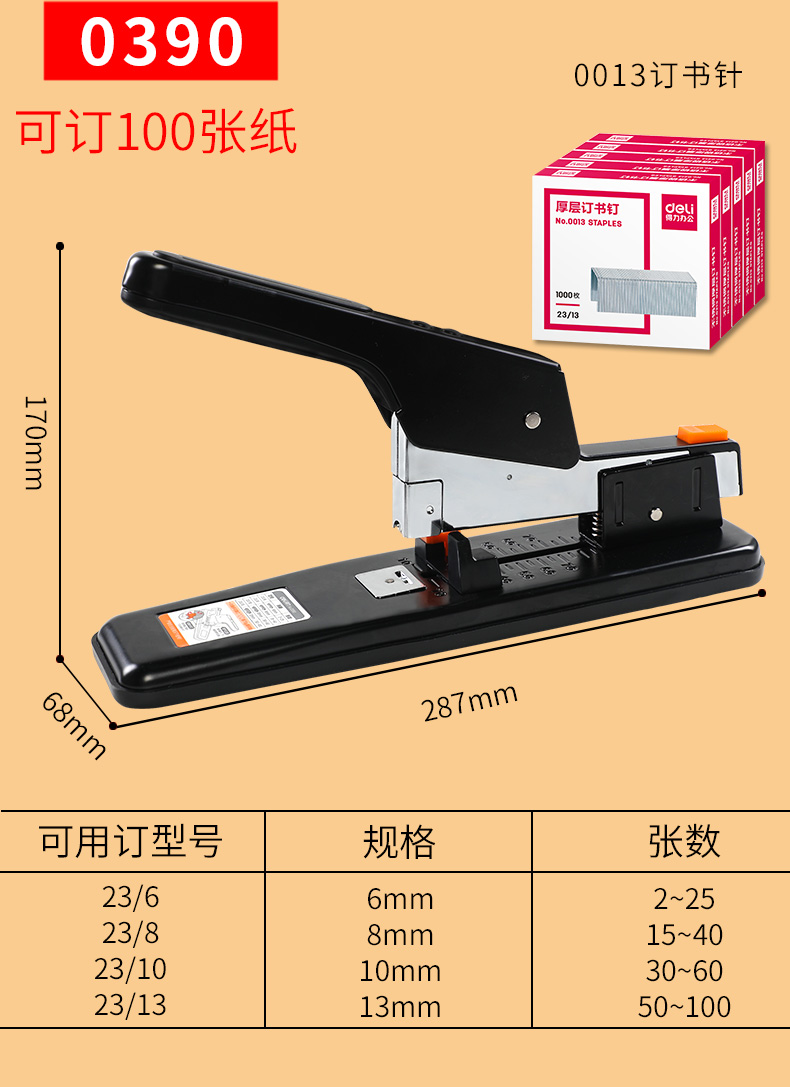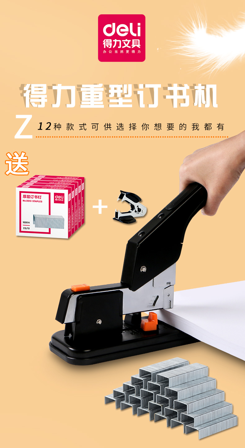 得力订书机大号重型订书器财务凭证大型装订机办公用加厚多功能超