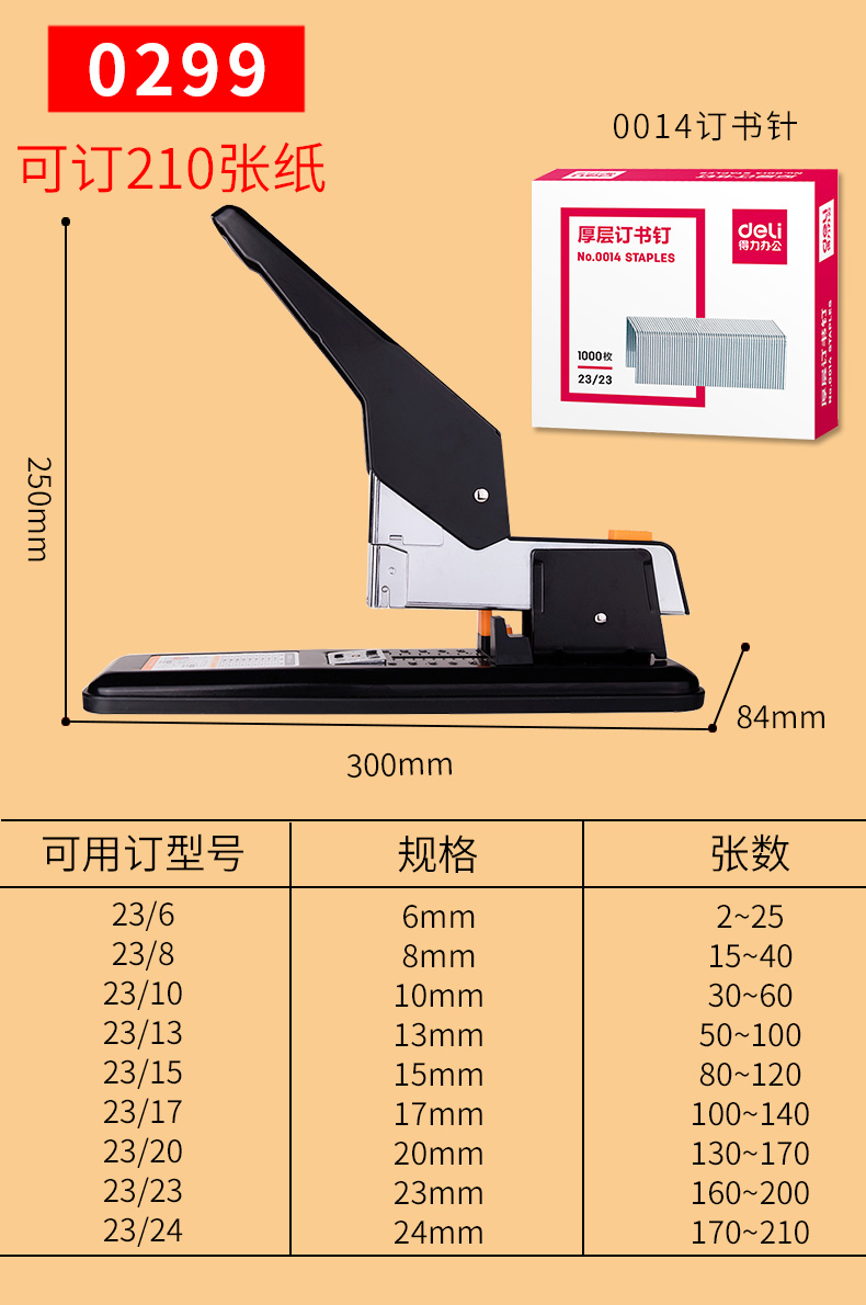 得力订书机大号重型订书器财务凭证大型装订机办公用加厚多功能超大210张订厚书大钉书机长臂省力装订神器
